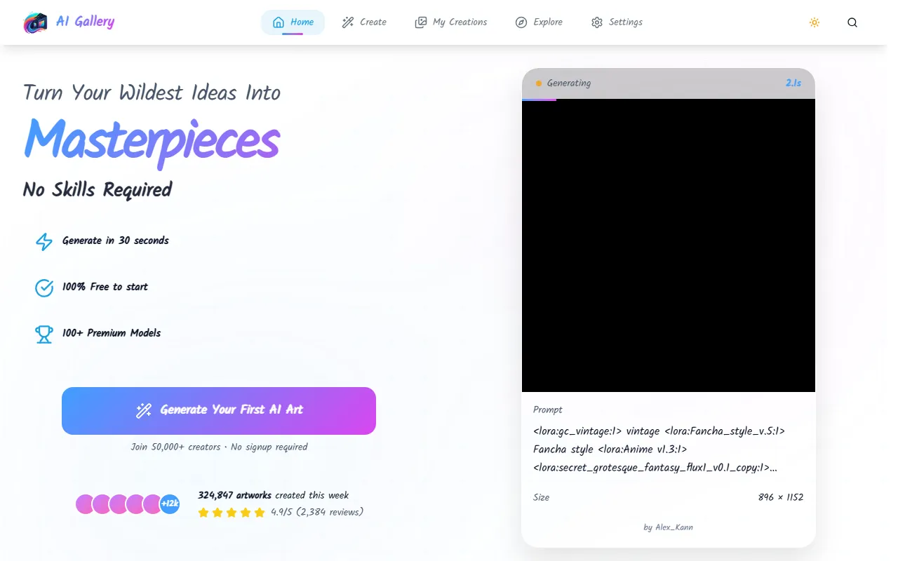 AI Gallery 是一款面向大众用户的 AI 图像生成与风格化创作工具,主打“无需安装、无需 GPU、快速出图”的在线体验。用户既可以基于文字描述生成图像,也可以围绕创意视觉、艺术风格和插画效果进行探索。官网信息显示,该工具基于 Stable Diffusion,提供 100+ 模型选择,并支持 4K 质量输出,适合用于灵感草图、社交媒体配图、个性化视觉内容制作等场景。