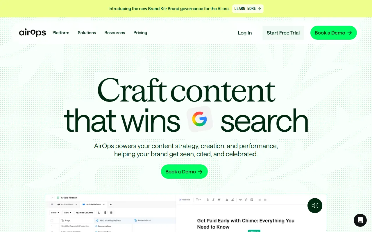 从官网信息来看,AirOps 主要聚焦于以下场景:帮助企业创建高质量内容、提升内容生产效率、扩大内容规模,并增强品牌在 AI 搜索场景中的被看见、被引用与被推荐的机会。对于希望在 Google、ChatGPT 等新搜索与问答环境中提升曝光的团队,AirOps 提供了一体化的内容工作流支持。