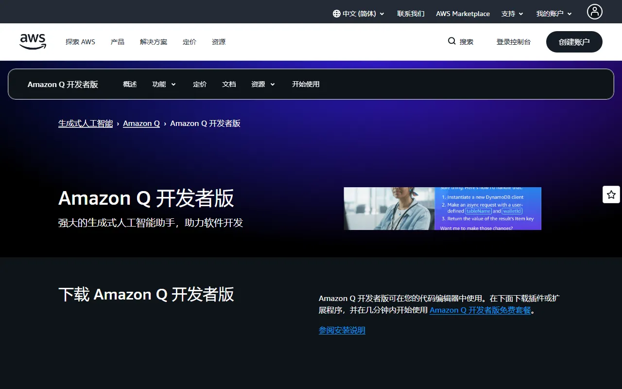 根据 AWS 官网最新页面,CodeWhisperer 的相关能力已纳入 Amazon Q Developer 产品体系,可视为 AWS 在生成式 AI 编程助手方向上的持续演进。