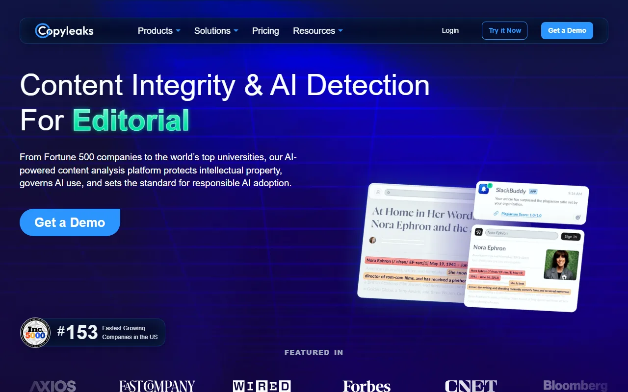 基于自然语言处理与机器学习技术,Copyleaks 不只比对字面重复,还能识别更复杂的改写和语义层面的相似内容。官网最新信息显示,其能力还扩展到AI 图像检测、内容合规、GenAI 治理和未经授权的 LLM 使用识别等方向,适合对内容可信度和知识产权保护有要求的团队使用。