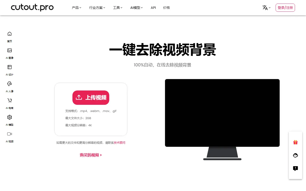 从官网信息来看,这项功能强调全自动处理与易用性,尤其适合没有专业剪辑经验的用户。相比传统依赖绿屏拍摄和后期抠像的软件流程,Cutout.Pro 更偏向“上传即可处理”的在线化体验。