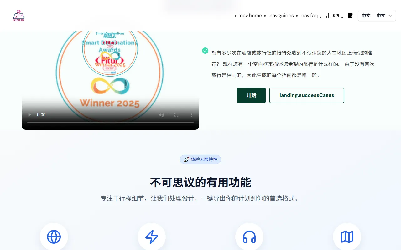 官网内容提到可为“任何目的地”创建个性化旅行 itinerary,说明其定位上支持全球旅行规划。
