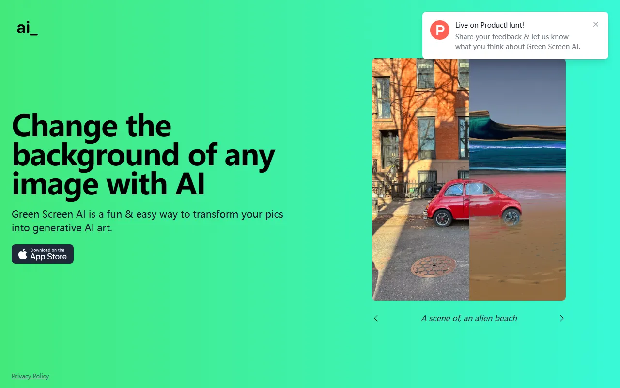 Green Screen AI 是一款面向照片创意编辑的 AI 图像生成与背景替换工具。它的核心思路不是简单地把人物或宠物从原图中抠出,再贴到现成背景上,而是借助生成式 AI 对照片场景进行重新构建,让普通照片快速变成更具想象力的视觉作品。