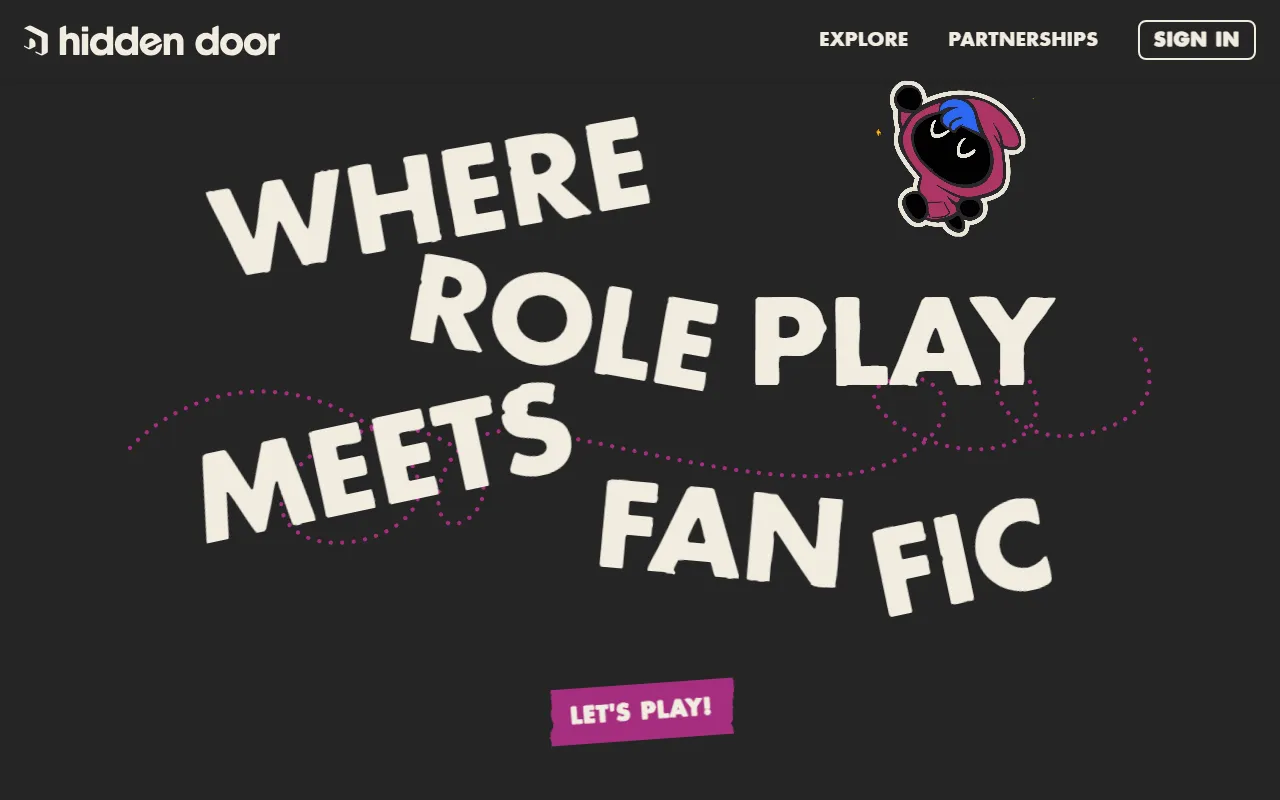 从官网信息来看,Hidden Door 的定位更接近“角色扮演遇上同人创作”的故事平台。用户可以创建角色、进入不同主题世界,并通过真实选择影响剧情走向。每一局体验都可能不同,叙事并非固定脚本,而是由系统在持续变化的故事世界中动态构建。