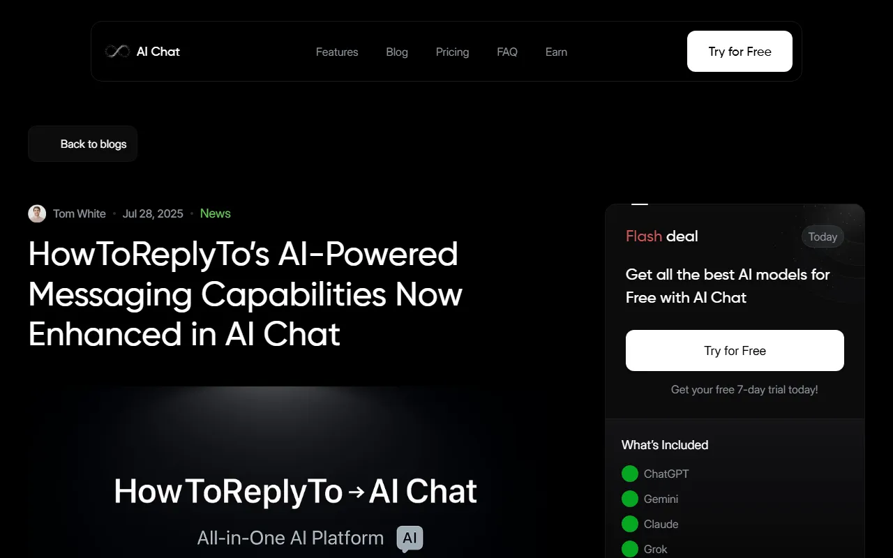 官网最新博客显示,HowToReplyTo 的消息回复能力已被整合并增强到 AI Chat 中。是否仍以独立工具形式提供,需要以官网当前实际页面信息为准。