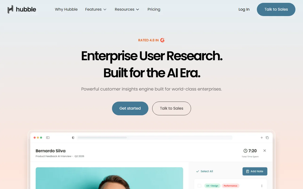 相比单一的问卷或反馈工具,Hubble 更强调从真实目标用户中收集高质量、具备上下文的信息,并将研究执行、数据整理与洞察提炼整合到同一平台中,适合需要持续开展用户研究的企业团队使用。