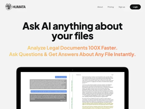 Humata AI 是一款面向文档理解与知识检索的 AI 工具,核心能力是将上传的文档,尤其是 PDF,转化为可交互的知识库。用户可以直接围绕文件内容提问,快速获得答案、摘要、要点整理与引用依据,适合处理技术资料、研究论文、法律文件、业务报告等长篇文档。