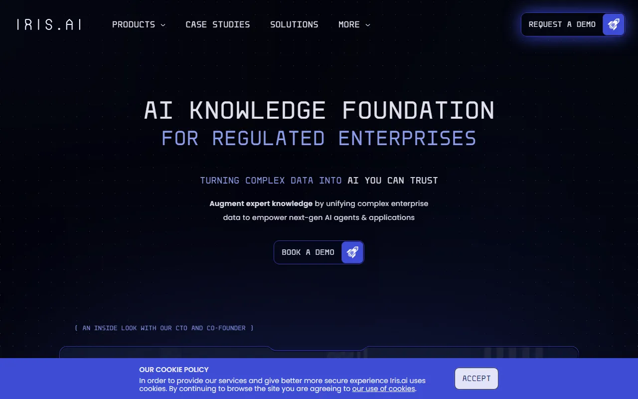 - 官网最新内容显示,Iris.ai 现强调整合复杂企业数据,为 AI agents 和 Agentic RAG 系统提供底层知识支撑。