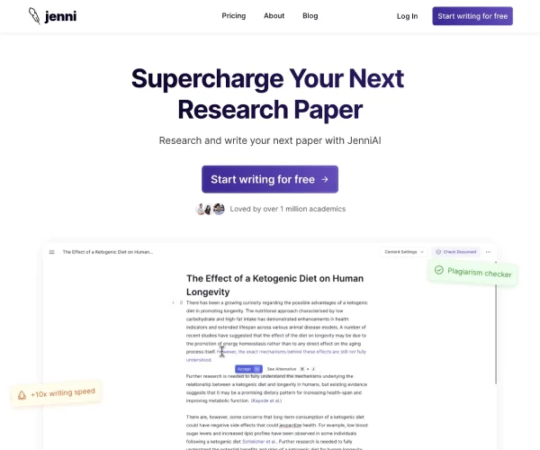 与通用型文案生成工具相比,Jenni 更强调学术写作支持。根据官网信息,它定位为 “AI Academic Writer & Research Tool”,可辅助用户完成 essay、paper 和 citation 等任务。同时,它也能用于邮件、说明性文本及部分内容创作场景,但整体更适合作为写作过程中的辅助工具,而非完全替代人工思考与表达。