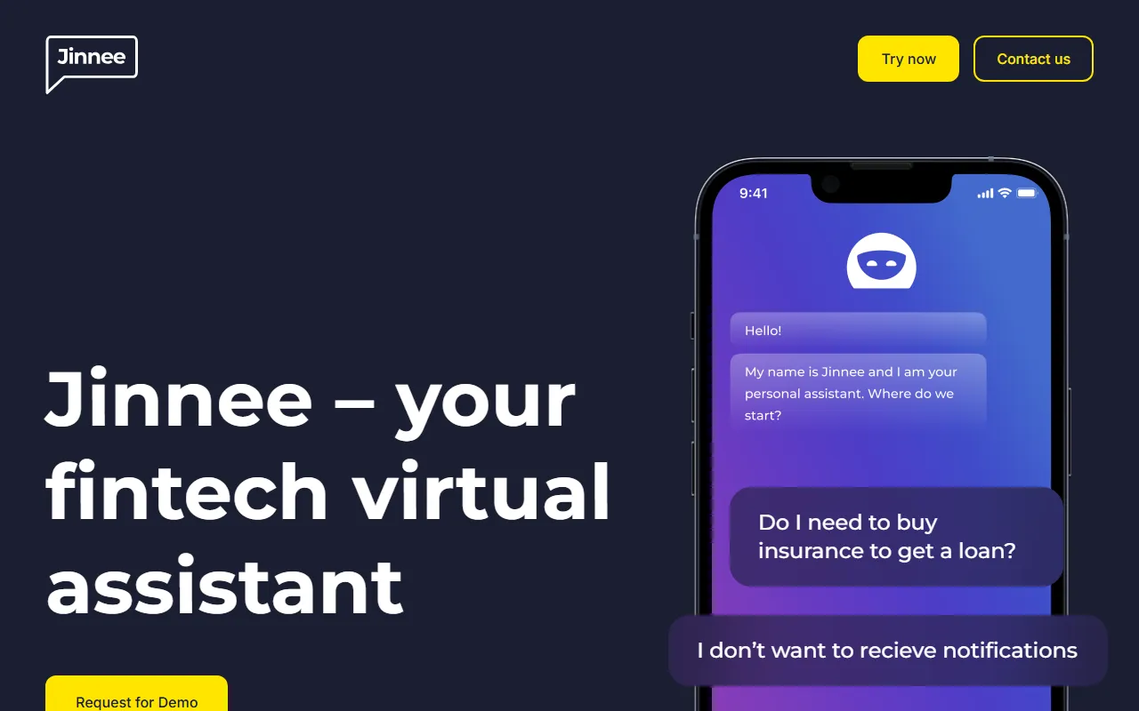 从页面可见信息来看,Jinnee 主要通过 Request for Demo(申请演示) 的方式进行产品咨询,这通常意味着其价格方案可能需要根据企业规模、咨询量或业务需求单独沟通。