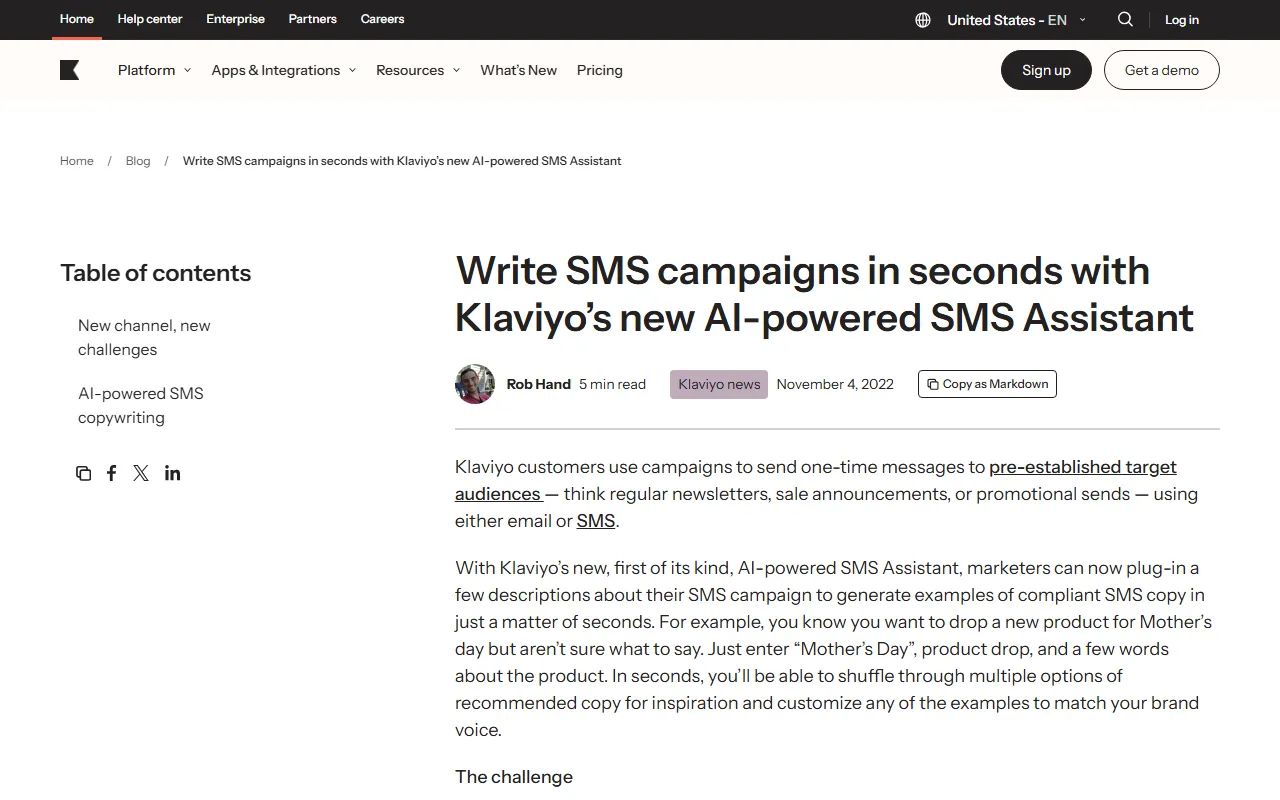 - 官网页面:https://www.klaviyo.com/product/whats-new/sms-assistant