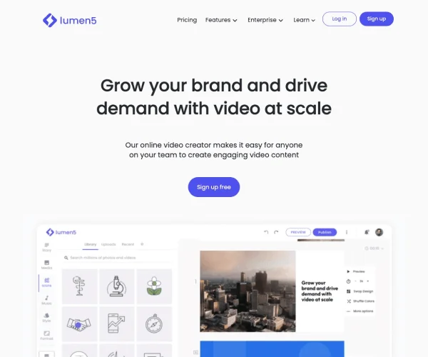 Lumen5 是一款面向普通用户和内容团队的 AI 视频制作平台,主打“文本转视频”和低门槛可视化编辑。用户可以将博客文章、营销文案或其他文本内容导入系统,由 AI 辅助生成视频初稿,再通过拖放式编辑器对画面、文字、素材和节奏进行调整。