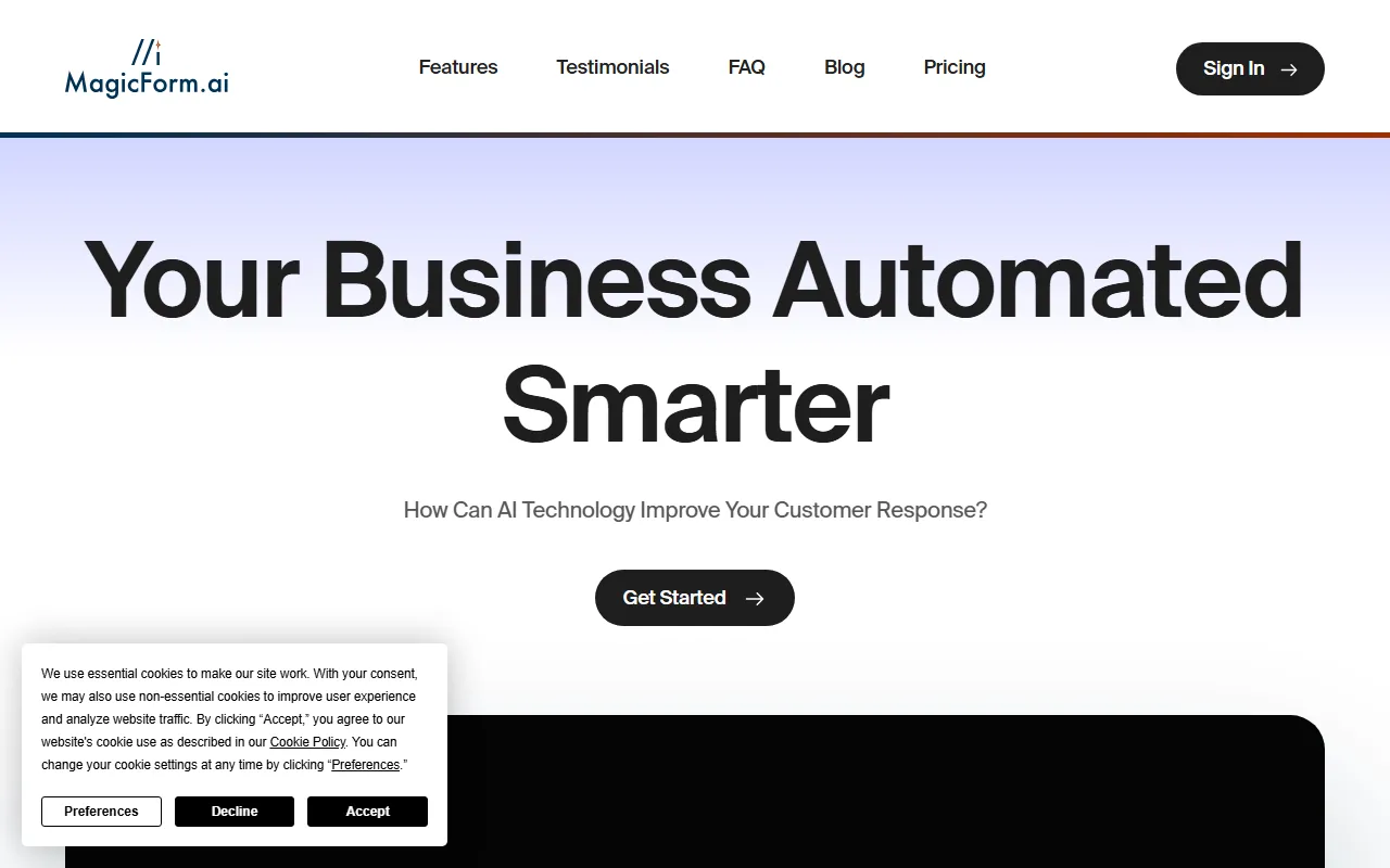 MagicForm 是一款面向企业网站的 AI 销售助手工具,主要用于网站访客接待、潜在客户资格判断、转化跟进与自动化沟通。它强调快速安装、快速训练和快速上线,企业可在较短时间内将 AI 助手嵌入官网,实现 24/7 实时响应。