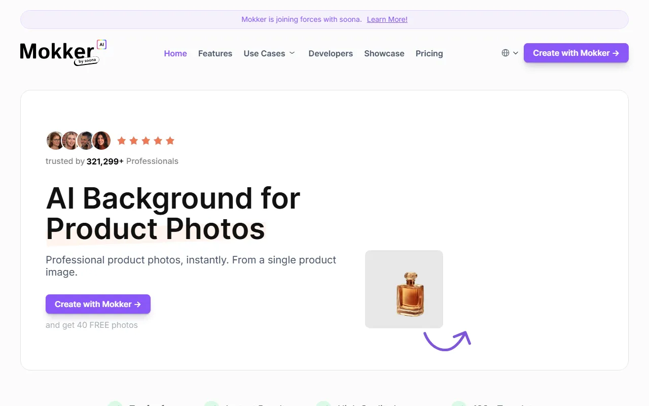 从官网信息来看,Mokker主打“Instant AI Background Replacement”,强调以更自然、真实的方式完成产品图背景替换,避免传统粗糙合成带来的“Photoshop痕迹”。它适合电商卖家、品牌团队、内容营销人员,以及需要快速批量尝试不同视觉风格的用户,用于商品主图优化、广告素材制作和社交媒体展示图生成。