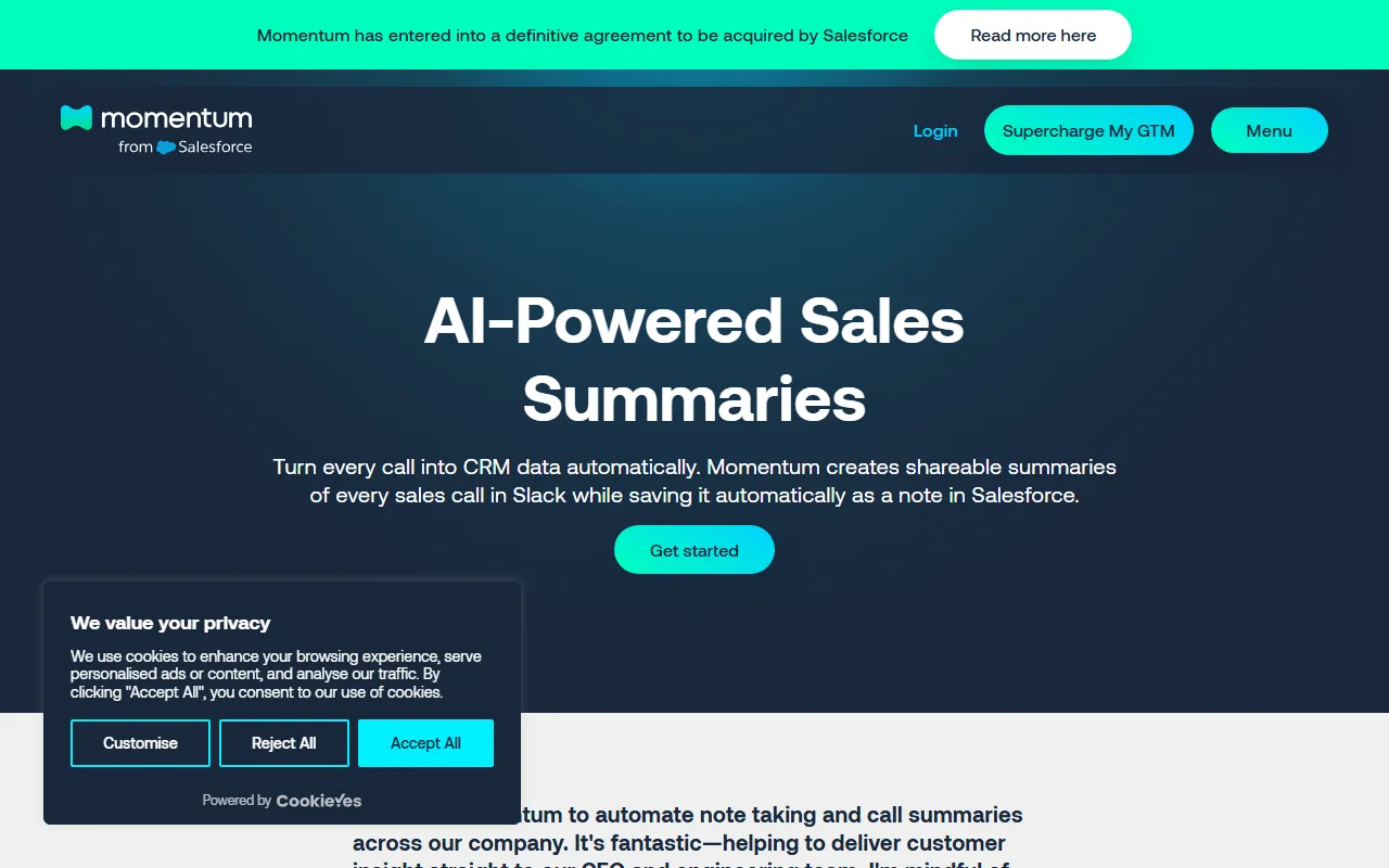 官网最新抓取内容显示,Momentum 已宣布与 Salesforce 达成收购协议。产品后续功能、品牌或服务形态可能会随着整合发生变化,建议以官方公告为准。
