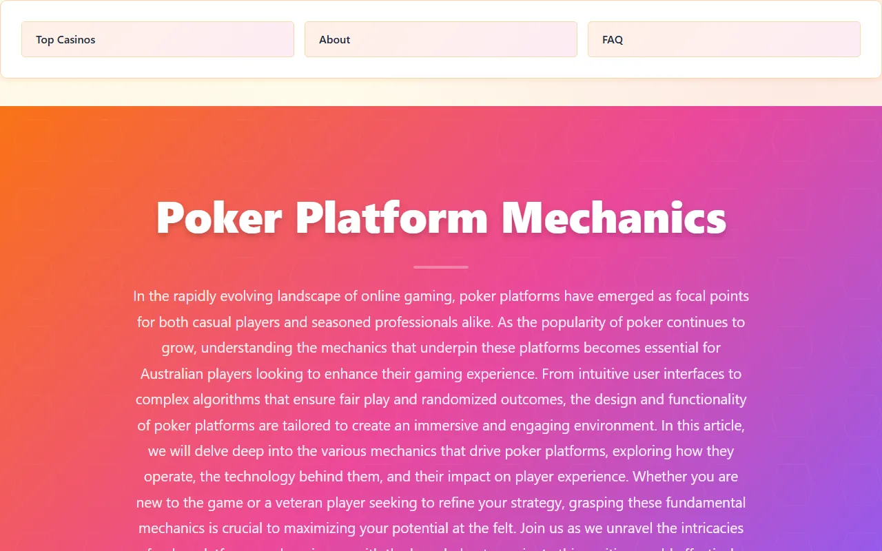 不过,基于当前可获取的官网最新内容来看,网站展示的信息与传统 AI 助手介绍存在一定差异。抓取到的页面内容主要围绕 在线扑克平台机制 展开,介绍了平台运行逻辑、公平性机制、随机算法以及玩家体验等主题。因此,NOLU 当前官网呈现内容与其工具定位之间可能存在更新、跳转或页面内容变动的情况,使用前建议前往官网进一步确认产品当前形态与实际功能。