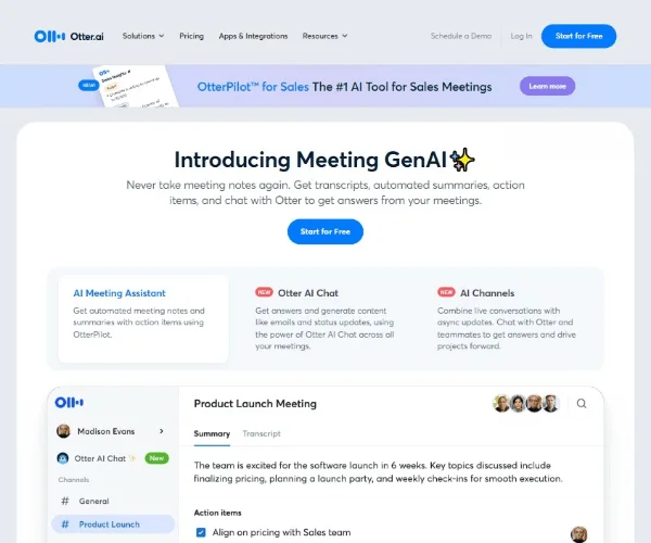 Otter AI 是一款面向会议记录与语音内容整理的 AI 办公工具,核心能力包括实时转录、自动会议摘要、行动项提取与会话检索。它可用于团队会议、线上协作、课堂记录、采访整理等场景,帮助用户减少手动记笔记的负担,更高效地沉淀会议内容。