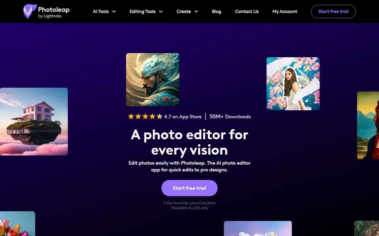Photoleap 是 Lightricks 推出的 iPhone 端 AI 照片编辑与创意设计应用,定位于将日常修图、创意合成和社交媒体内容制作整合到一款移动工具中。它提供从基础照片优化到进阶视觉创作的一站式能力,适合希望在手机上快速完成图片编辑、海报风视觉制作或艺术化内容生成的用户。