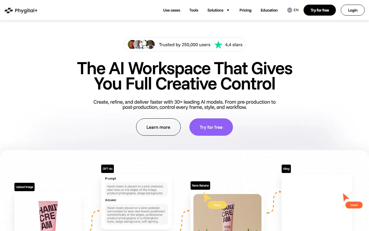 根据官网信息,Phygital+ 将 30+ AI 工具与模型 集成在同一工作区中,可用于从前期创意探索到后期视觉优化的完整流程。对于数字艺术、品牌视觉、AR/互动内容尝试、创意原型开发等场景,这种节点化、低代码的方式能有效降低技术门槛并提升工作效率。