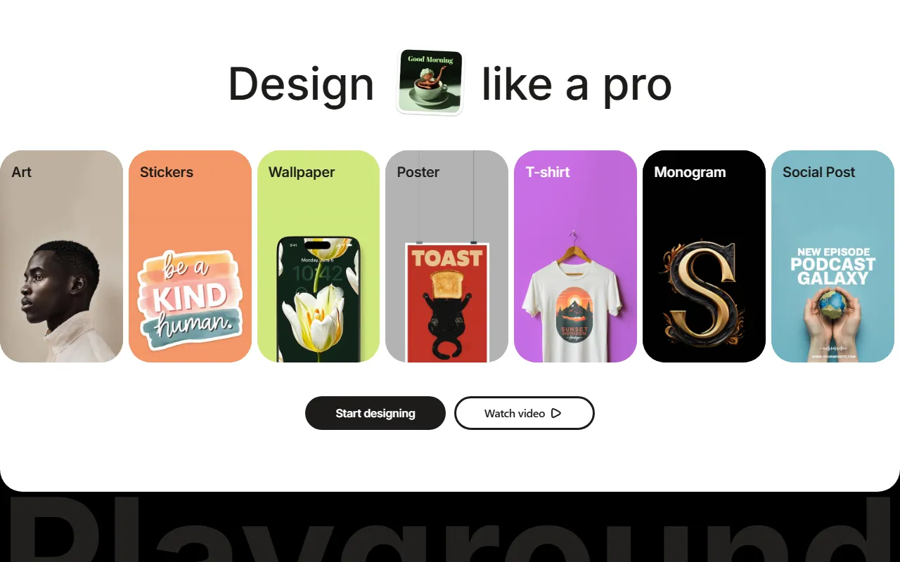 Playground AI 是一款面向图像创作与设计场景的在线 AI 工具,定位于“免费 AI 设计工具”。从官网公开信息来看,它主要用于快速生成和编辑各类视觉内容,适合制作徽标、T 恤图案、社交媒体配图,以及其他自定义设计与图形素材。