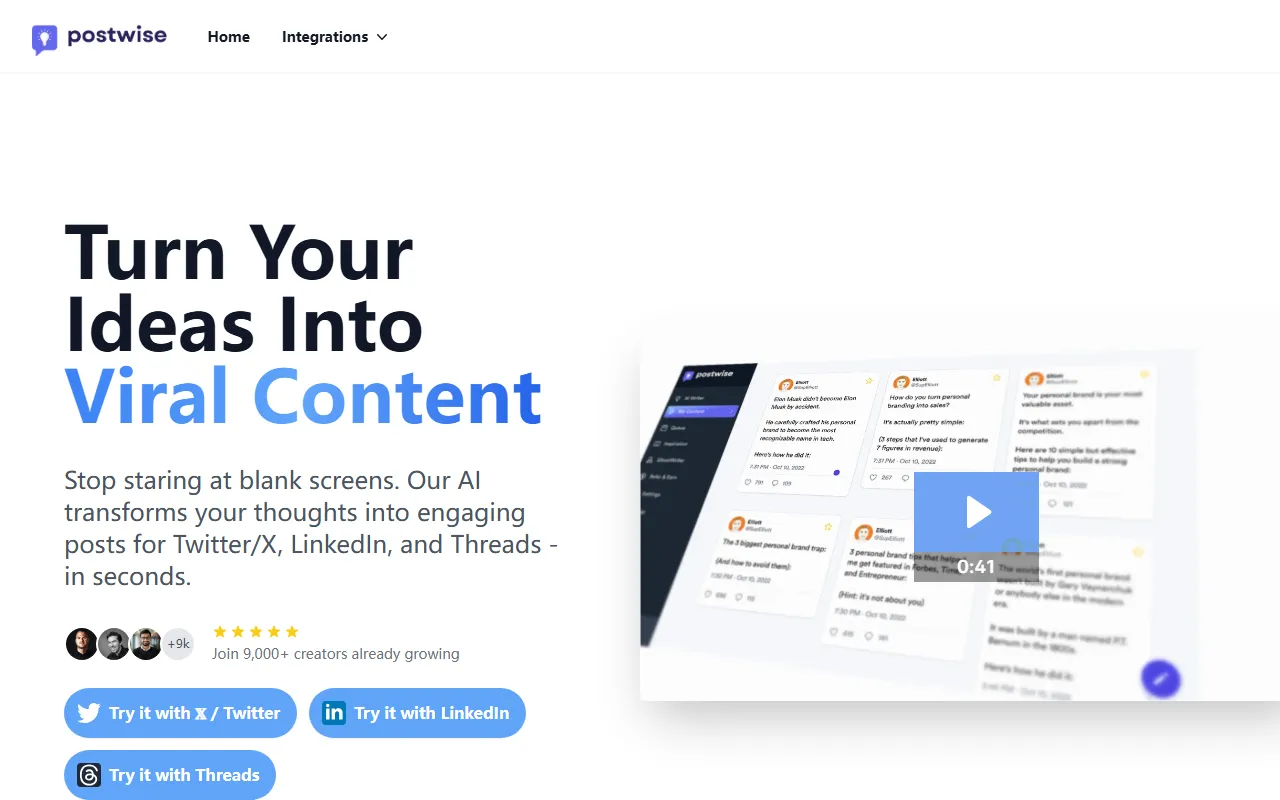 Postwise 是一款面向社交媒体内容创作与发布管理的 AI 写作工具,主要服务于需要持续更新账号内容的个人创作者、独立开发者、品牌运营者和内容团队。它聚焦于将用户的想法快速转化为适合社交平台发布的短内容,支持 Twitter/X、LinkedIn 和 Threads 等平台。