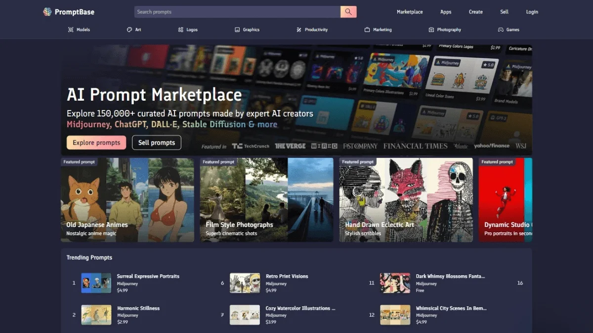 PromptBase 是一个专注于 AI 提示词交易与发现 的在线平台,面向需要快速获得高质量 Prompt 的个人用户、设计创作者、内容生产者以及提示词开发者。平台聚合了适用于 ChatGPT、Gemini、Midjourney、DALL·E、Stable Diffusion、Veo 等模型的提示词资源,用户可以直接浏览、购买并复用现成模板,也可以上传自己的提示词进行出售。