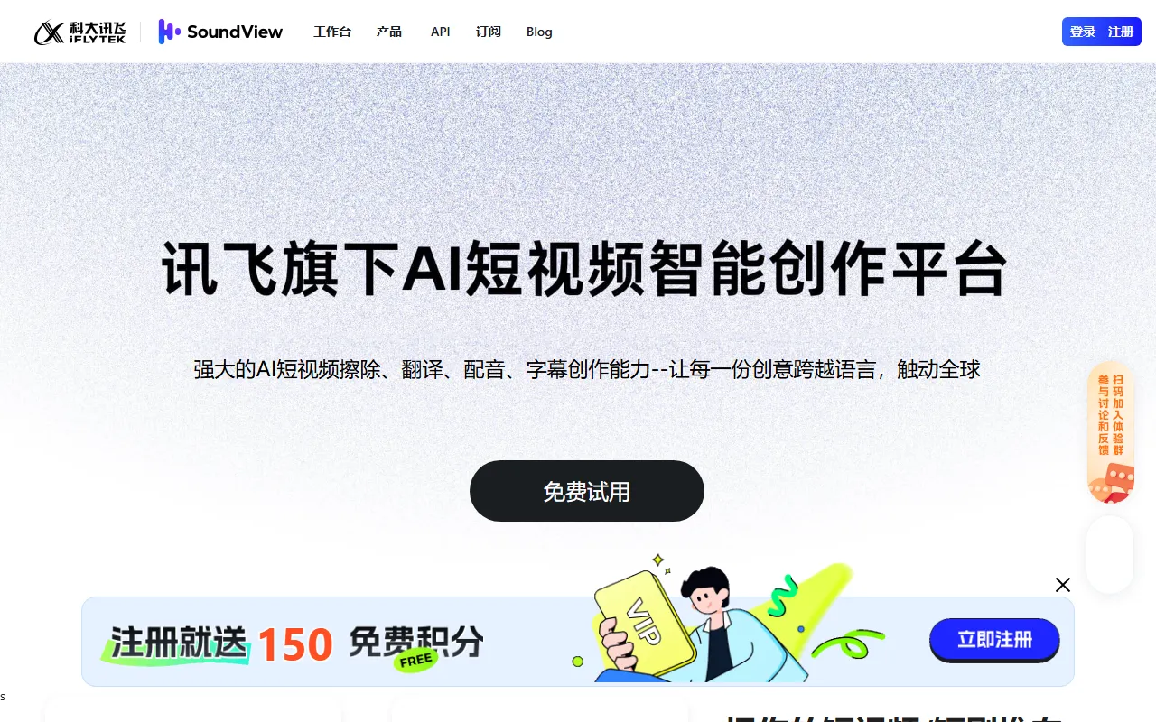 SoundView(声动视界)是一款面向跨境营销与视频本地化场景的 AI 音频与视频工具,提供视频翻译、视频配音、语音克隆、口型同步、视频擦除、视频换脸等能力。平台将多语种翻译、语音识别、语音合成与大模型生成能力整合到同一流程中,帮助团队更高效地完成多语言视频制作。
