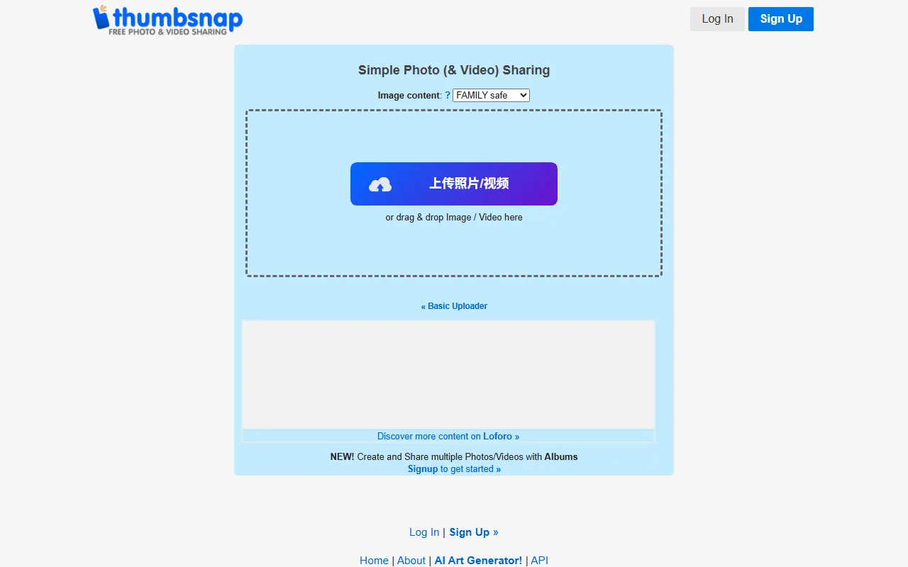 ThumbSnap 是一个面向个人用户的在线图片与视频托管和分享平台,主打“免费上传、快速分享”。从官网当前信息来看,用户无需复杂操作即可通过网页选择文件并上传,适合临时分享图片、公开展示内容,或作为简单的媒体托管工具使用。