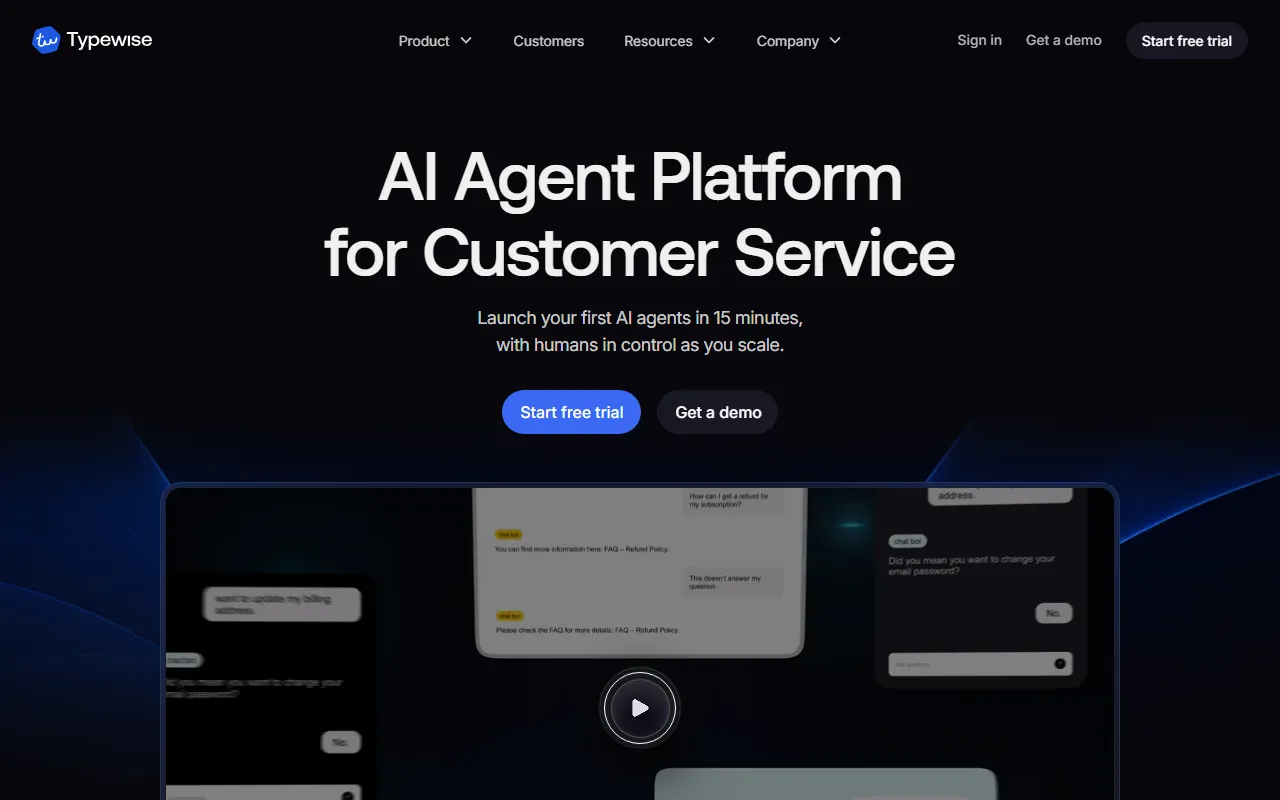 Typewise 是一款面向企业客户服务与销售团队的 AI 沟通平台,核心目标是缩短处理时长、提升回复质量,并帮助团队在多渠道场景下更高效地完成客户互动。根据官网信息,它定位为 企业级 AI customer service platform,强调可通过 AI 将工单处理时间降低约 50%。